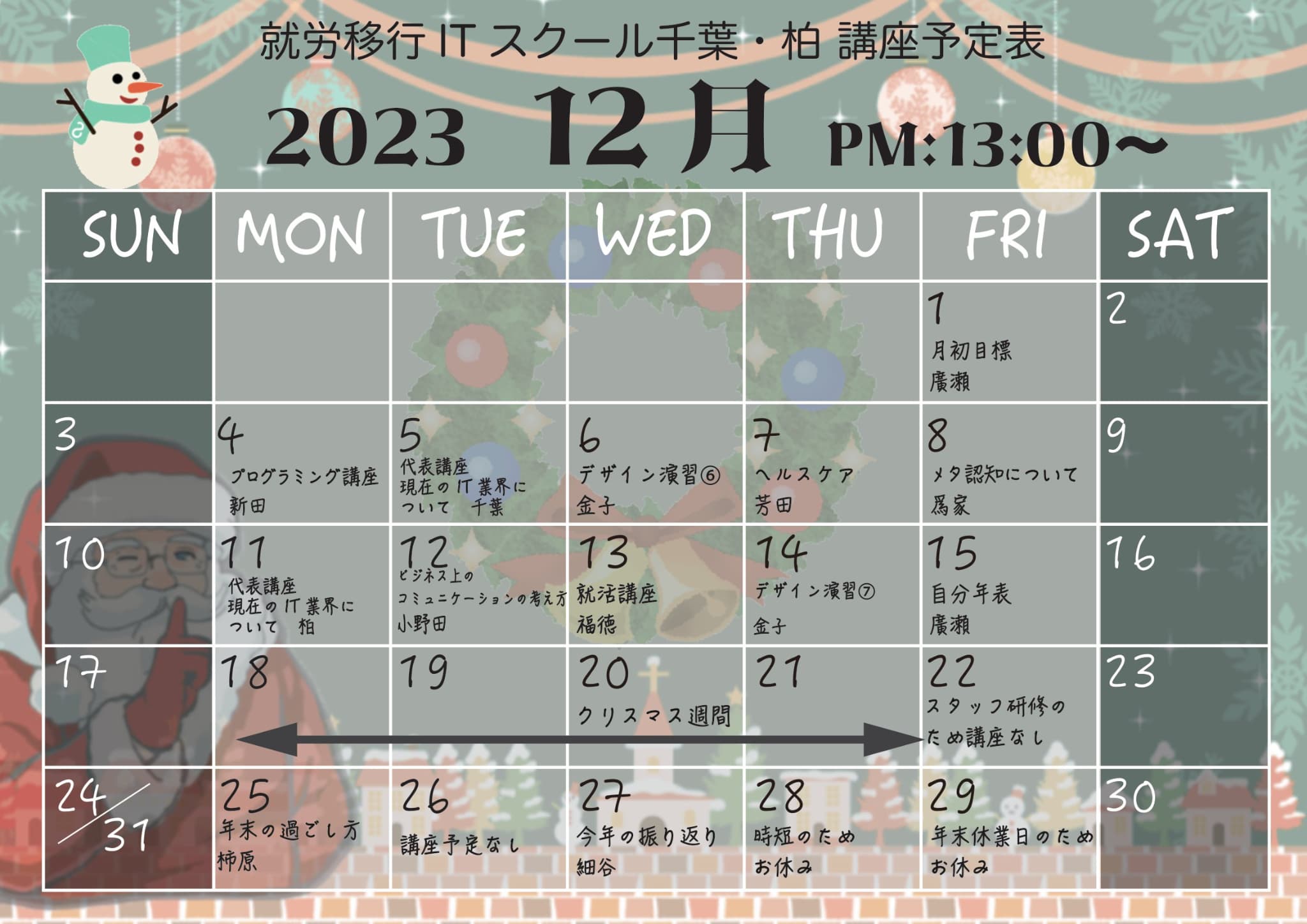 | 2023/12/2 | 講座ページに12月の講座予定表を掲載しました。 |