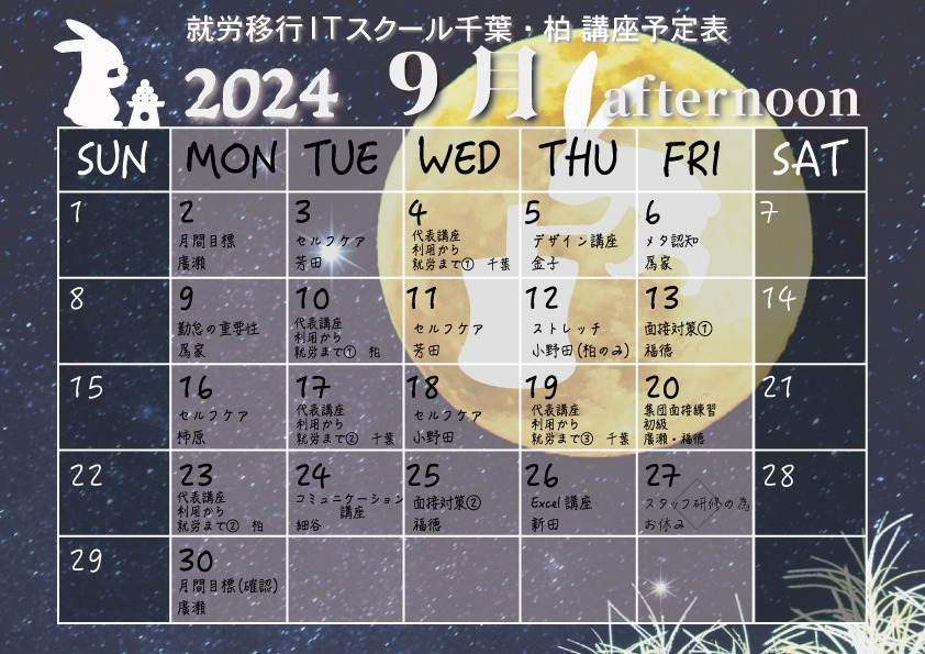 | 2024/8/29 | 9月の講座予定表の日程が一部変更になりました。 |